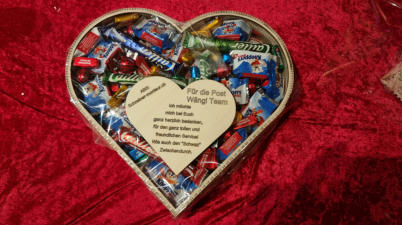 Auf Wunsch befülle ich das Herz mit diversen Schokoladen.